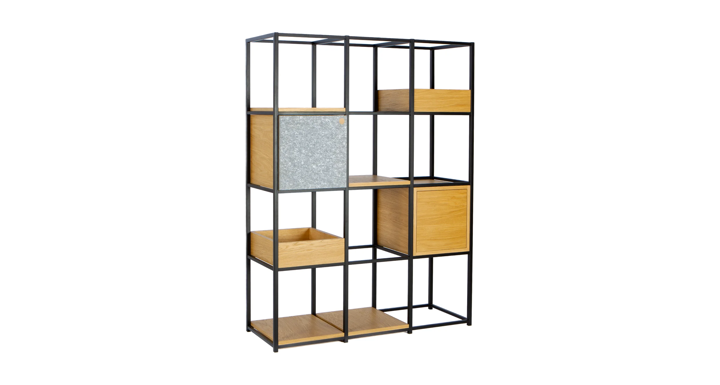 The MOKO system shelving is a modular arrangement of cubes, forming a structured grid for shelves, plant pots, cabinets and other furniture elements. Additional components allow the function of the piece to evolve, giving it a distinctive and adaptable character. The structure is made of steel profile, manufactured using 3D laser technology and finished in any colour from the RAL palette. The system enables flexible configurations and scalable compositions tailored to individual needs.