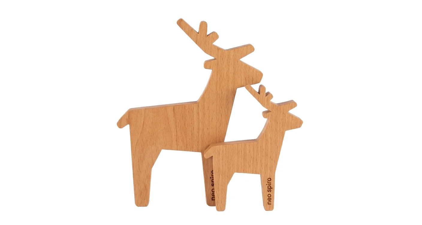 A minimalist decoration in the form of solid reindeer silhouettes, made of 20 mm wood. Due to their thickness, the figurines are exceptionally stable and can serve as a standalone decoration for a desk, counter, or display window. The raw wooden color and simple form give them a modern, Scandinavian character.