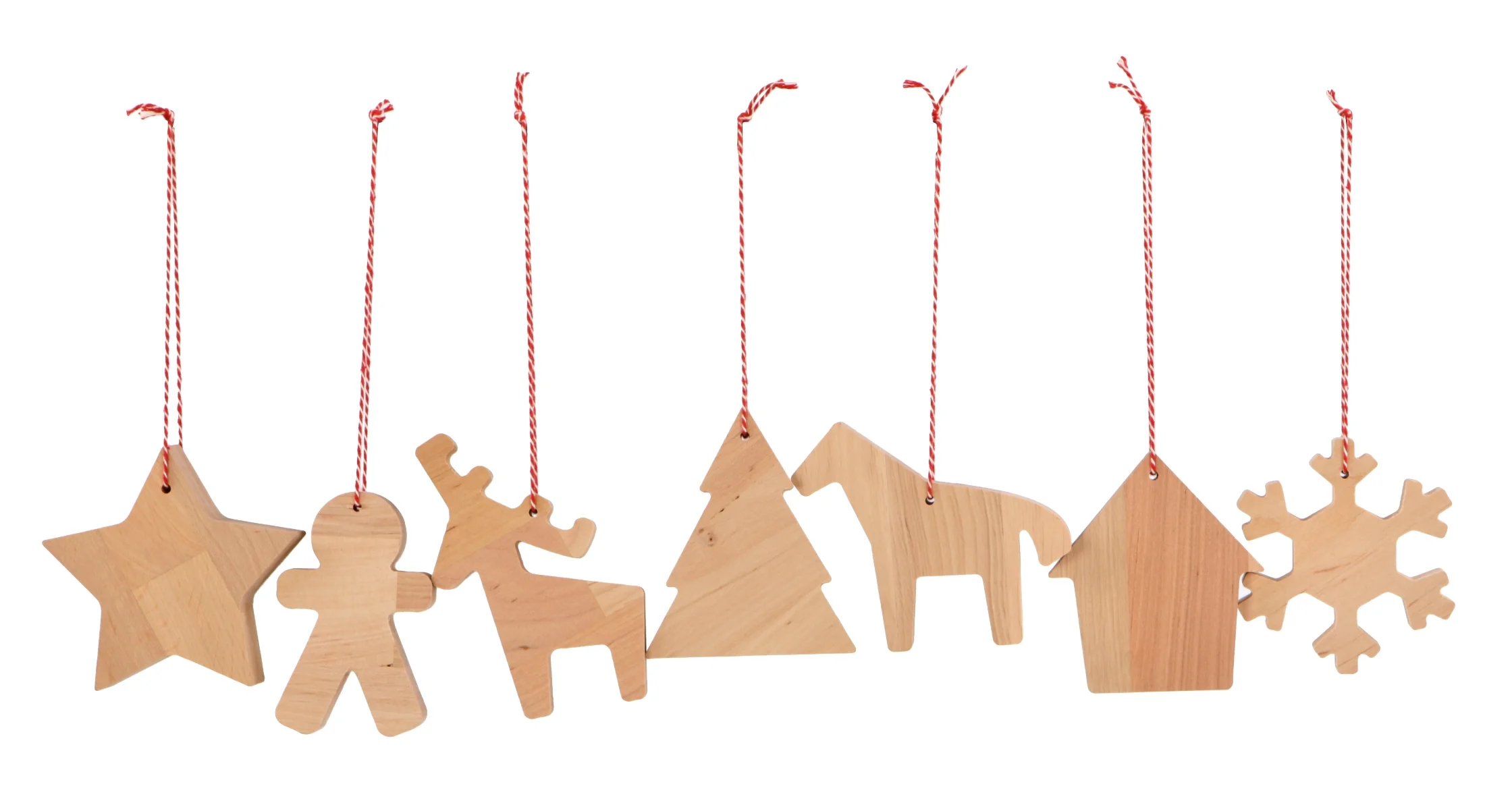 Set of 14 beech wood pendants with Christmas motifs.