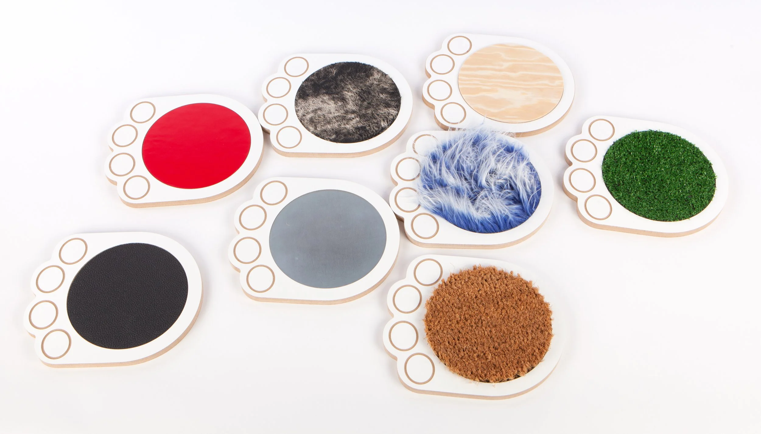 The Yeti Sensory Path consists of 8 foot-shaped tiles, each covered with a different texture made from various fabrics. Walking barefoot across the tiles provides rich sensory stimulation, supporting balance, body awareness, and tactile exploration.