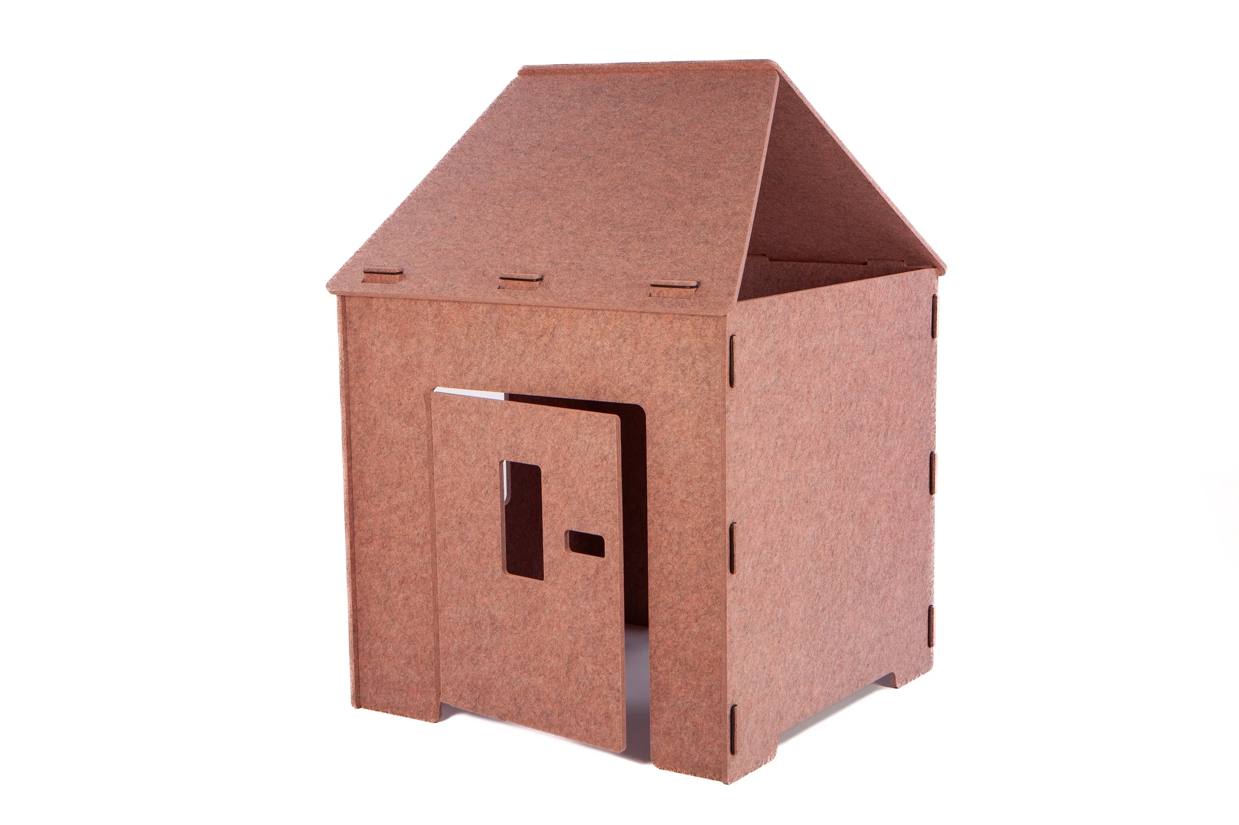 The dowel connections and rubber rings ensure stability and ease of assembly. The material used for the playhouse, neoFELT™, reduces noise, creating a quiet and comfortable play environment. This material is also recyclable.