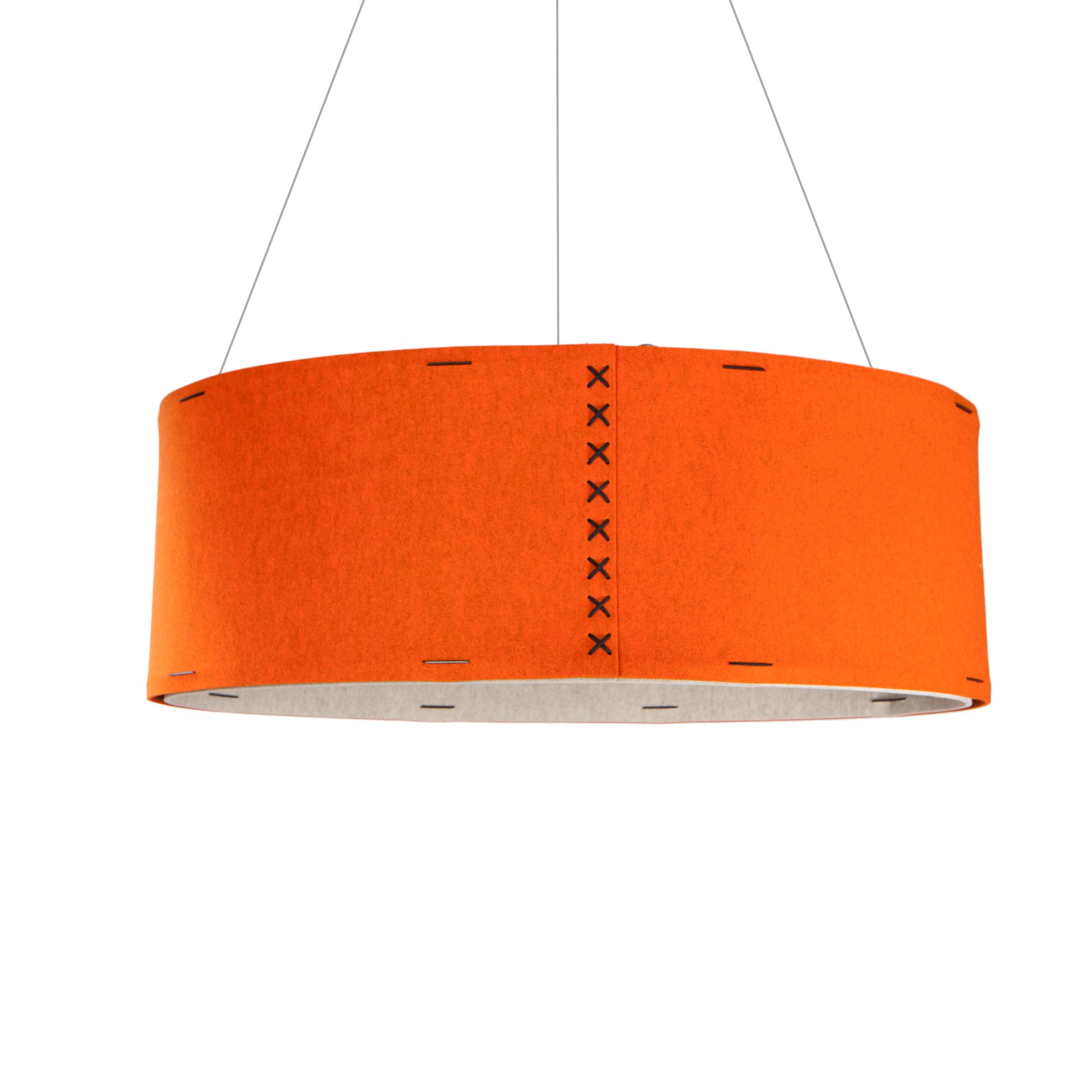 Wisząca oprawa oświetleniowa o charakterystycznym kształcie daszka, wykonana z filcu PET o grubości 12 mm. Od wewnątrz materiał został wyłożony białą wełną, która działa jak skuteczny reflektor światła. Połączenie użytych materiałów zapewnia lampie wysoką izolację akustyczną, co pozwala na skuteczne pochłanianie dźwięków w otoczeniu.